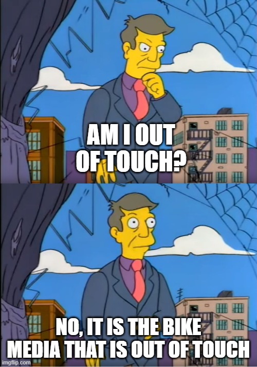 I used to write a blog about goings on in the bike trade and being salty about it, which is pretty easy as the bike trade is a horrible place. I got bored after a couple of years, as essentially, it is like shooting fish in a barrel. It was too easy; a trade that thinks adding another cog is progress is probably still in nursery school education, which is not to bad-mouth toddlers.